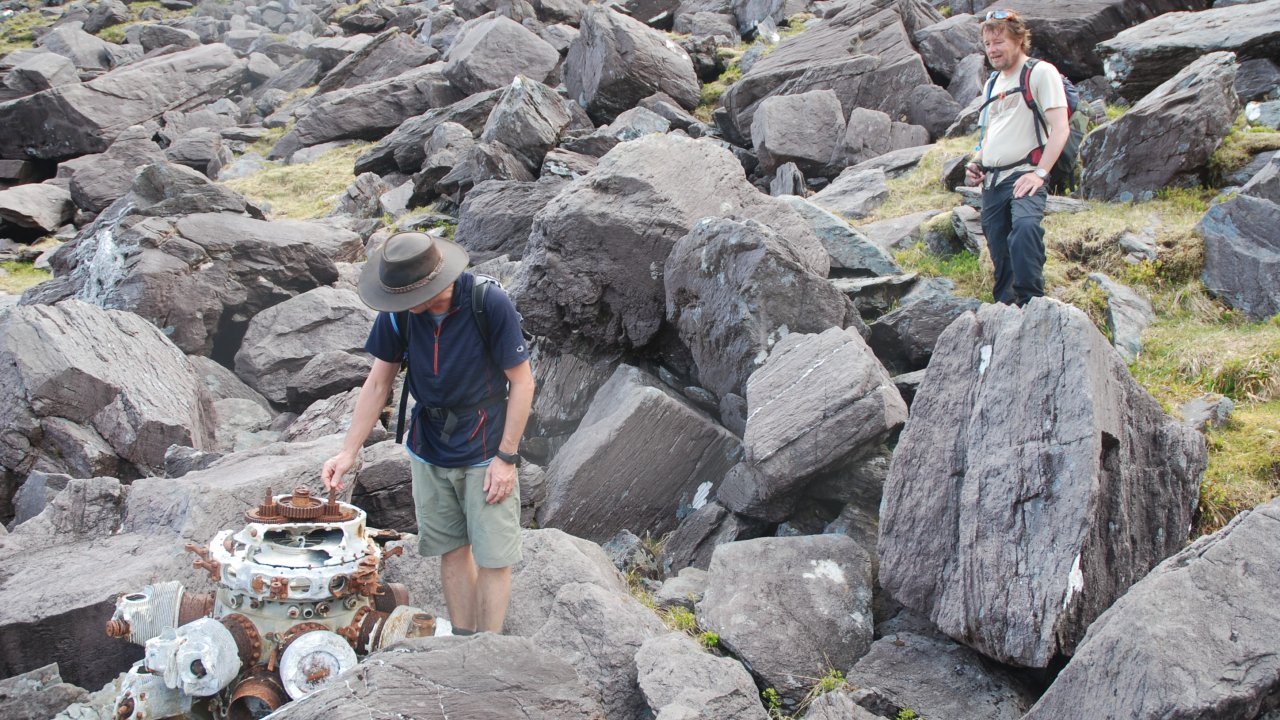 A Guided Hike to the location of the 1943 Crash of USAAF Dakota on Cnoc na Péiste mountain. With the view of Carrauntoohil, Ireland's highest peak, in sight, we will go off the beaten track and visit the site of The Lost SkyTrain, below Cnoc na Péiste ridge, a less travelled area of the MacGillicuddy’s Reeks.